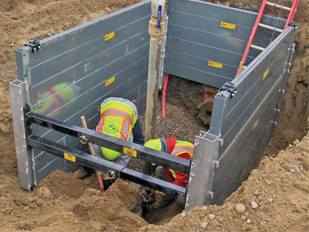 shielding and trench shoring systems such as trench boxes and vertical hydraulic shores.